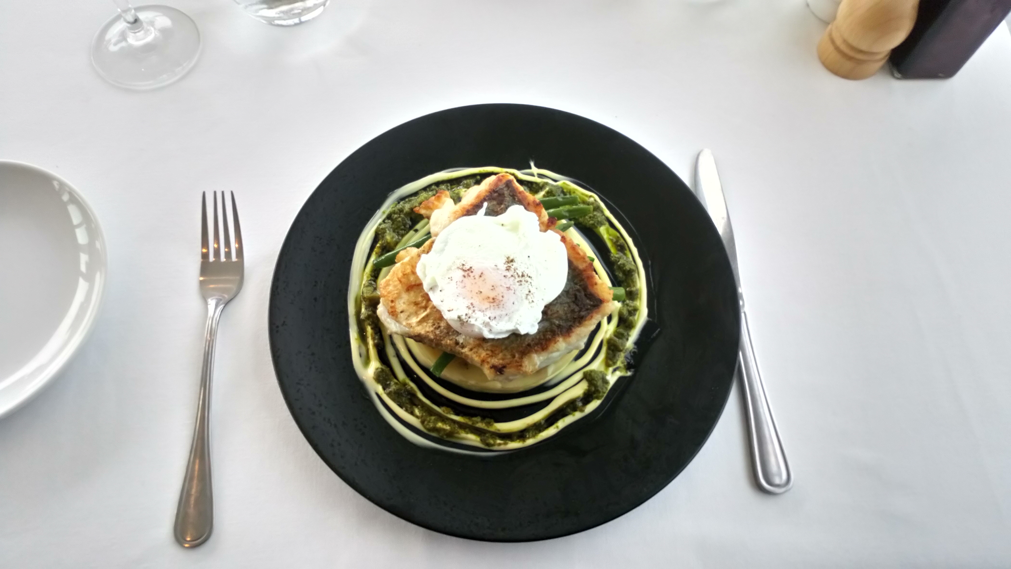 A very filling main course followed of locally caught hake fillet accompanied by a Salsa Verdi – garlic mash, green beans, soft poached egg and aioli. Delicious. A gastronomical explosion of tastes. Superbly presented and beautifully cooked.